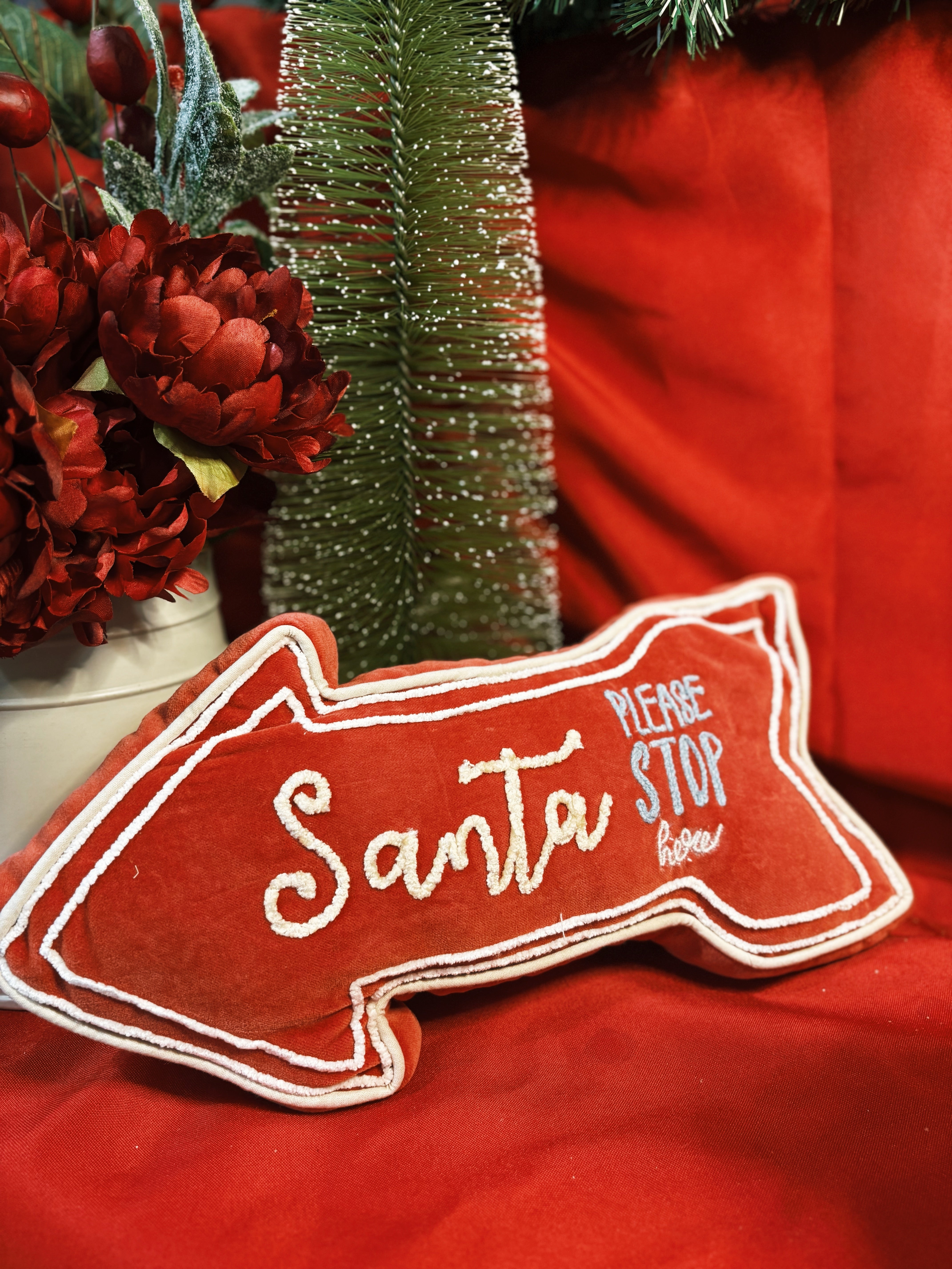 This cotton lumbar pillow, emblazoned with the festive plea, is a delightful way to welcome the holiday season. A colorful "Santa Please Stop Here" message adorns this lumbar pillow, inviting a cheerful holiday spirit into the home. Its multicolored design adds a pop of cheer to any space, while the soft cotton cover and comfortable polyester fill ensure it's as practical as it is charming. With dimensions of 16 inches in length and 8.5 inches in height, it's ideally sized for providing support or serving as a merry addition to the seasonal decorations. A colorful "Santa Please Stop Here" message adorns this lumbar pillow, inviting a cheerful holiday spirit into the home. An enchanting addition to the Christmas setup, it complements seasonal throws and holiday-themed decor. Polyester fill insert included.