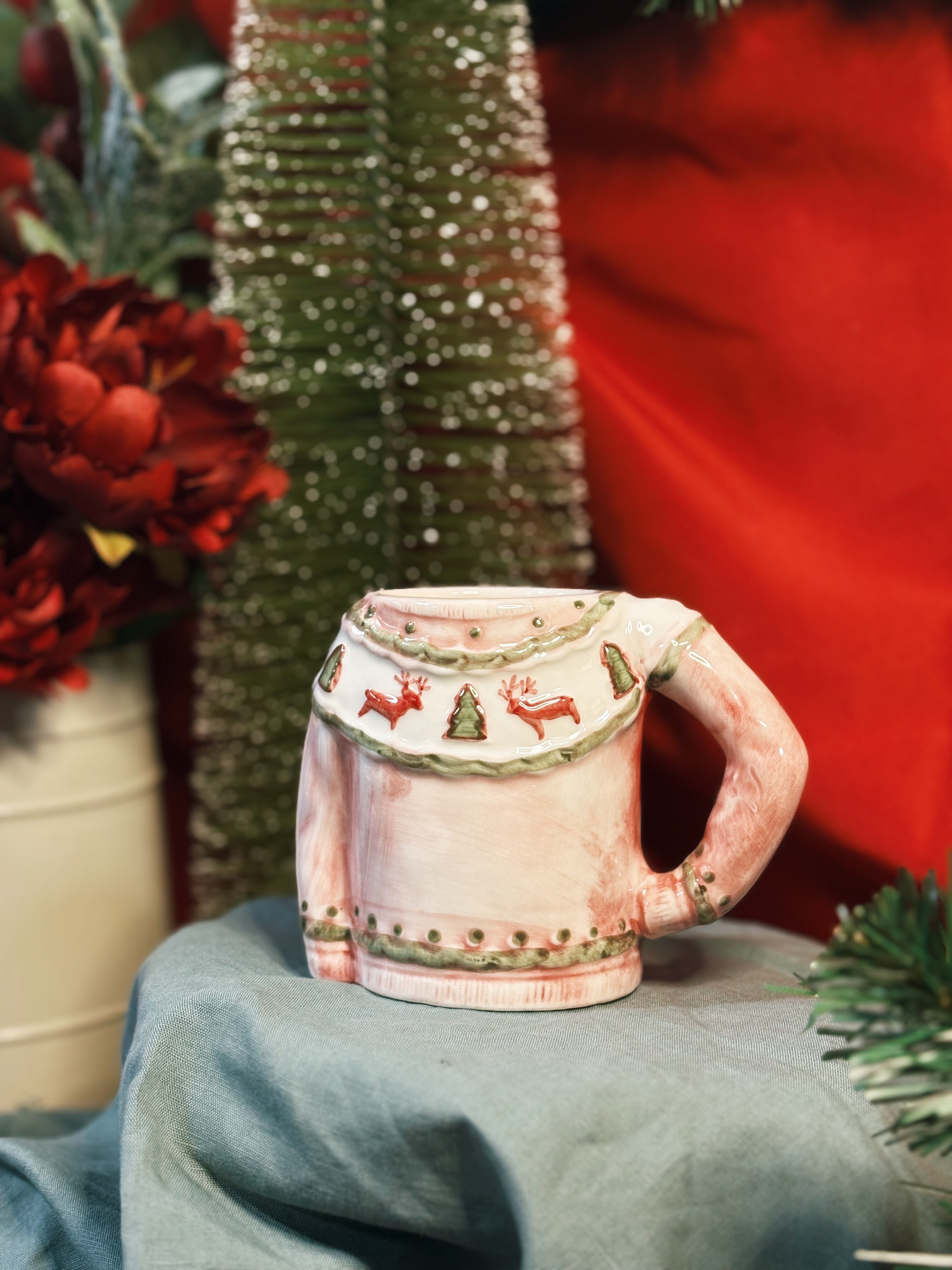 Cozy up with this adorable 14 oz stoneware sweater mug! 🧶 Available in pink, green, or blue, each mug is shaped like a tiny sweater – perfect for sipping cocoa, coffee, or tea in style.