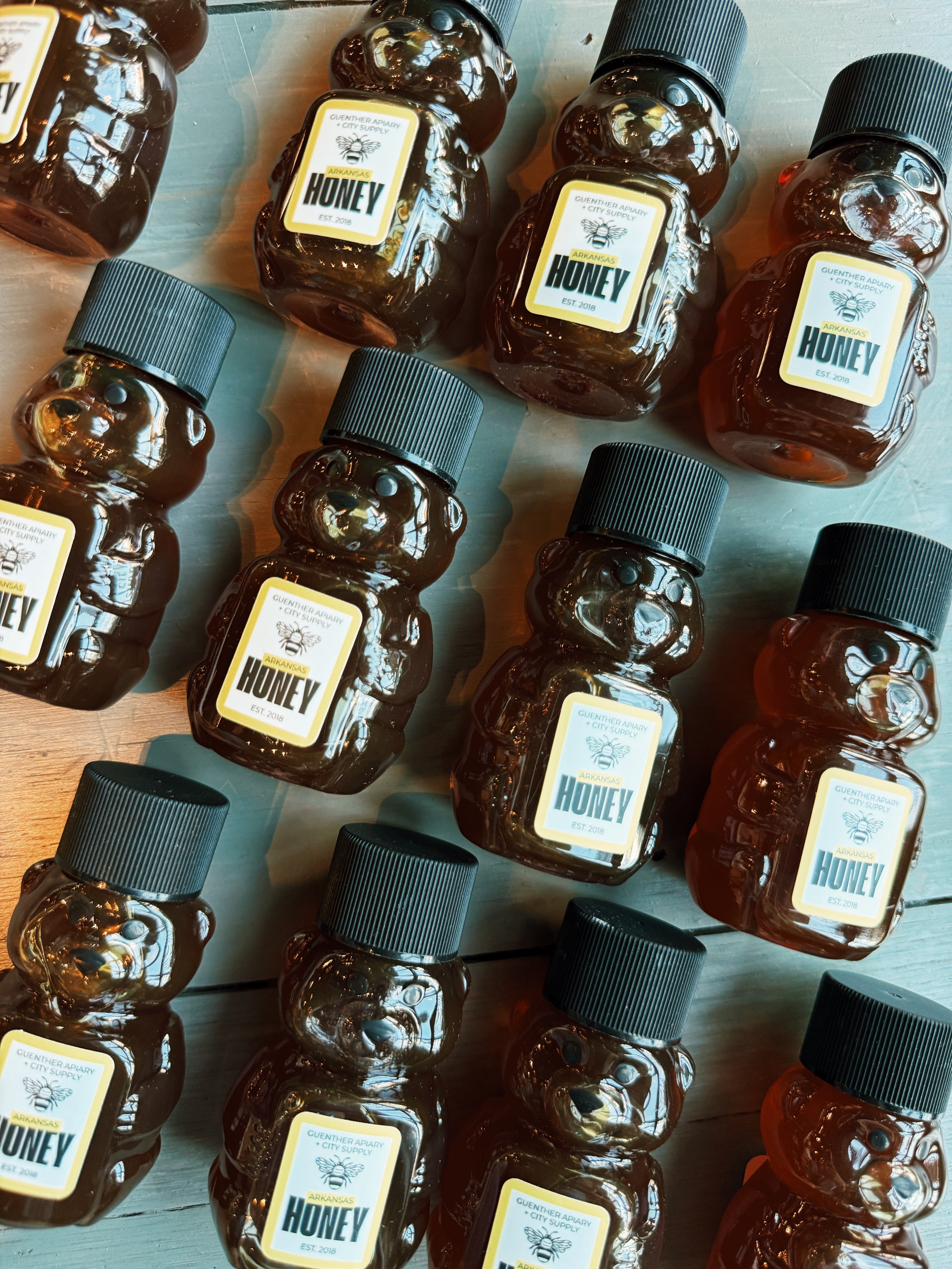 Add a touch of local sweetness with these Mini Arkansas Honey Bears! These adorable 2 oz Mini Honey Bears from Guenther Apiary, a beloved local Arkansas producer, make the perfect gift or stocking stuffer. Each bear is filled with pure, small-batch honey infused with just the right amount of flavor—delicious drizzled on biscuits, pizza, or cheese boards. A sweet taste of Arkansas, straight from the hive!