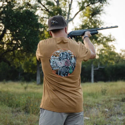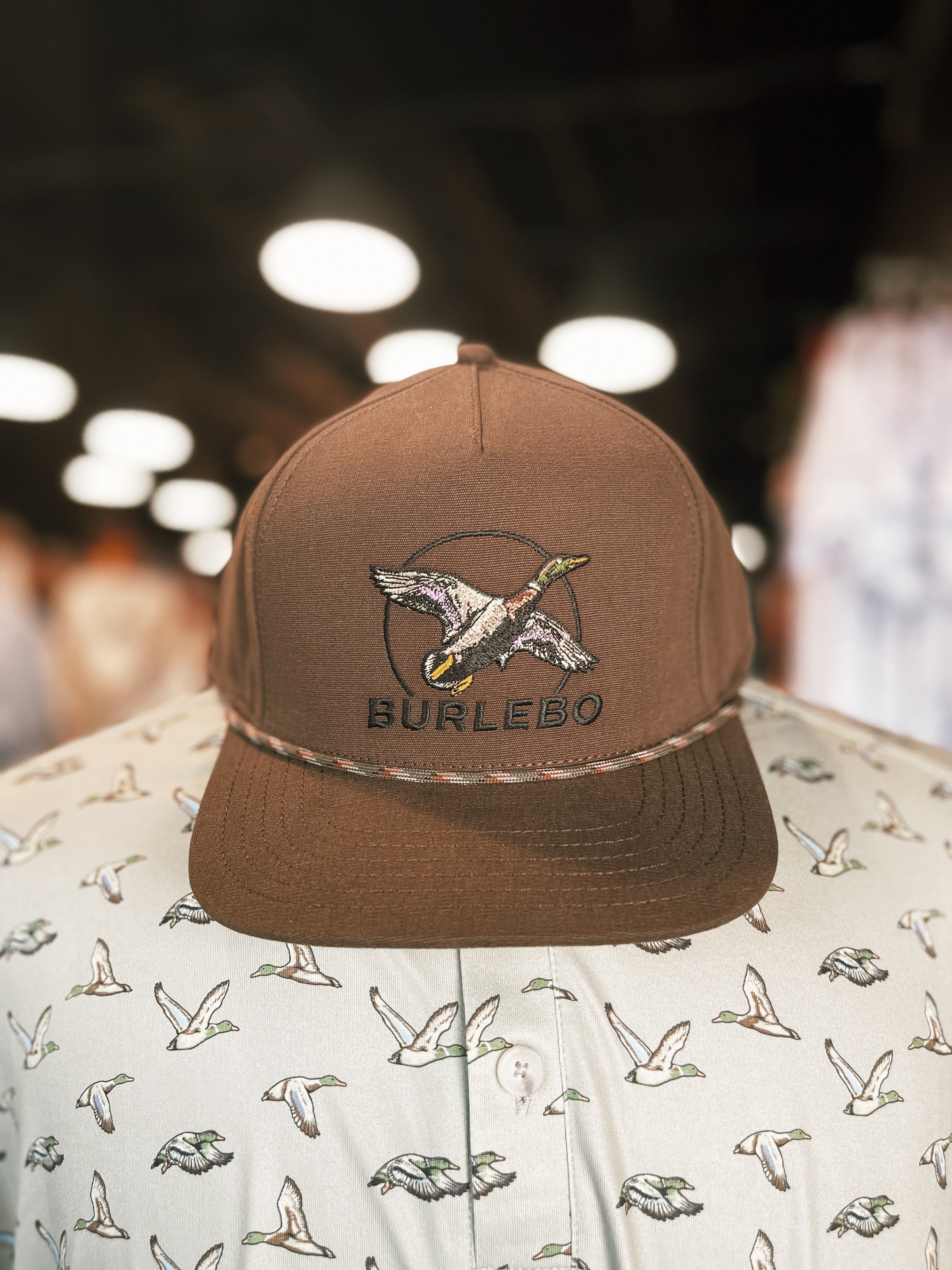 Take flight in style with the Fly By Brown Cap from BURLEBO. Featuring an embroidered mallard in mid-flight, this cap captures the spirit of the outdoors with rugged charm. Set against a deep brown background, the bold artwork is complemented by a black rope detail across the front panel for a classic touch. Built for comfort and durability, this cap is perfect for everyday wear, whether you're in the field, on the water, or just out and about.
