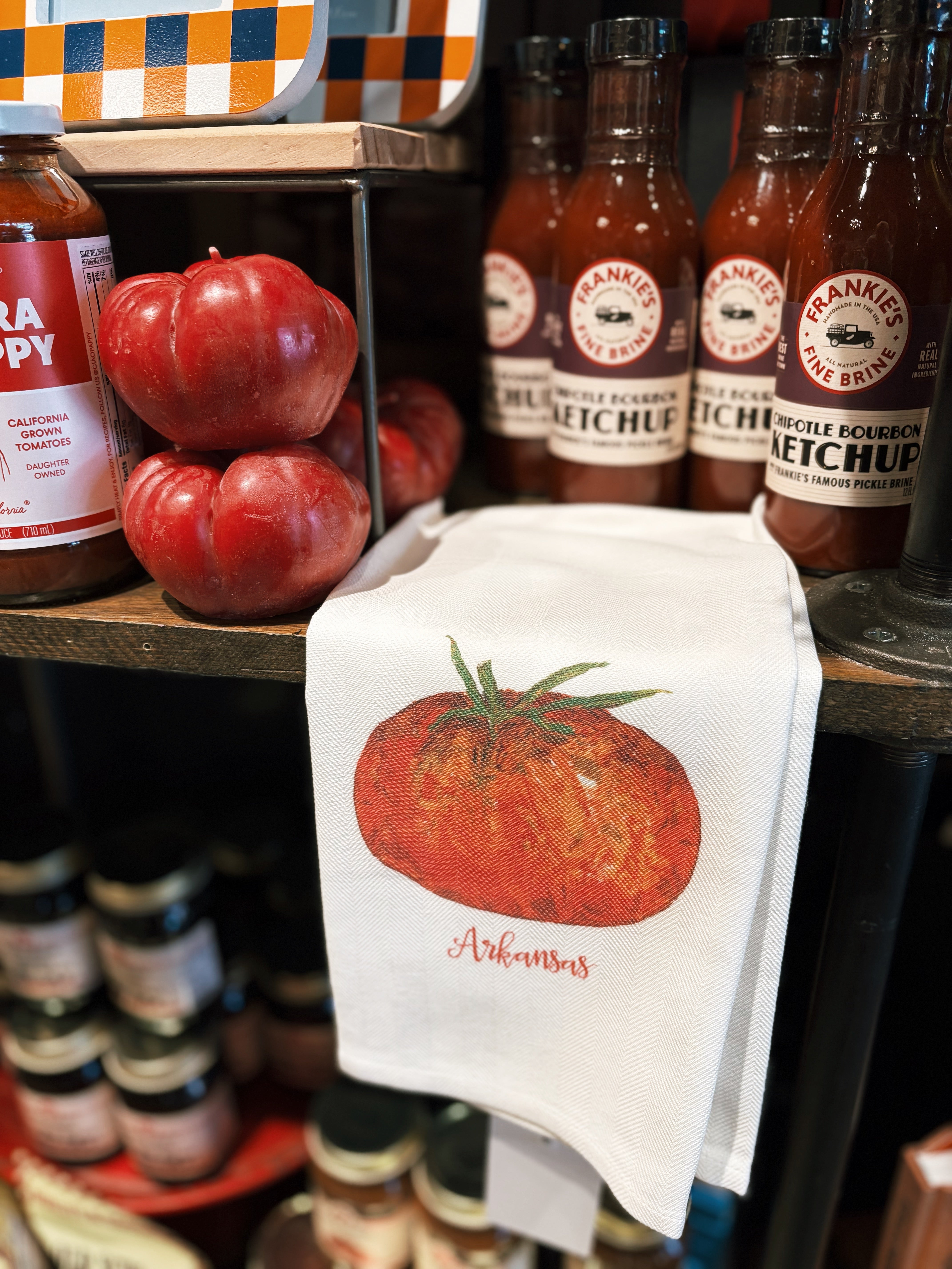 Nothing says Arkansas like homegrown tomatoes! This cheerful dish towel adds a pop of color (and local charm) to your kitchen—perfect for drying dishes or gifting to a fellow foodie.