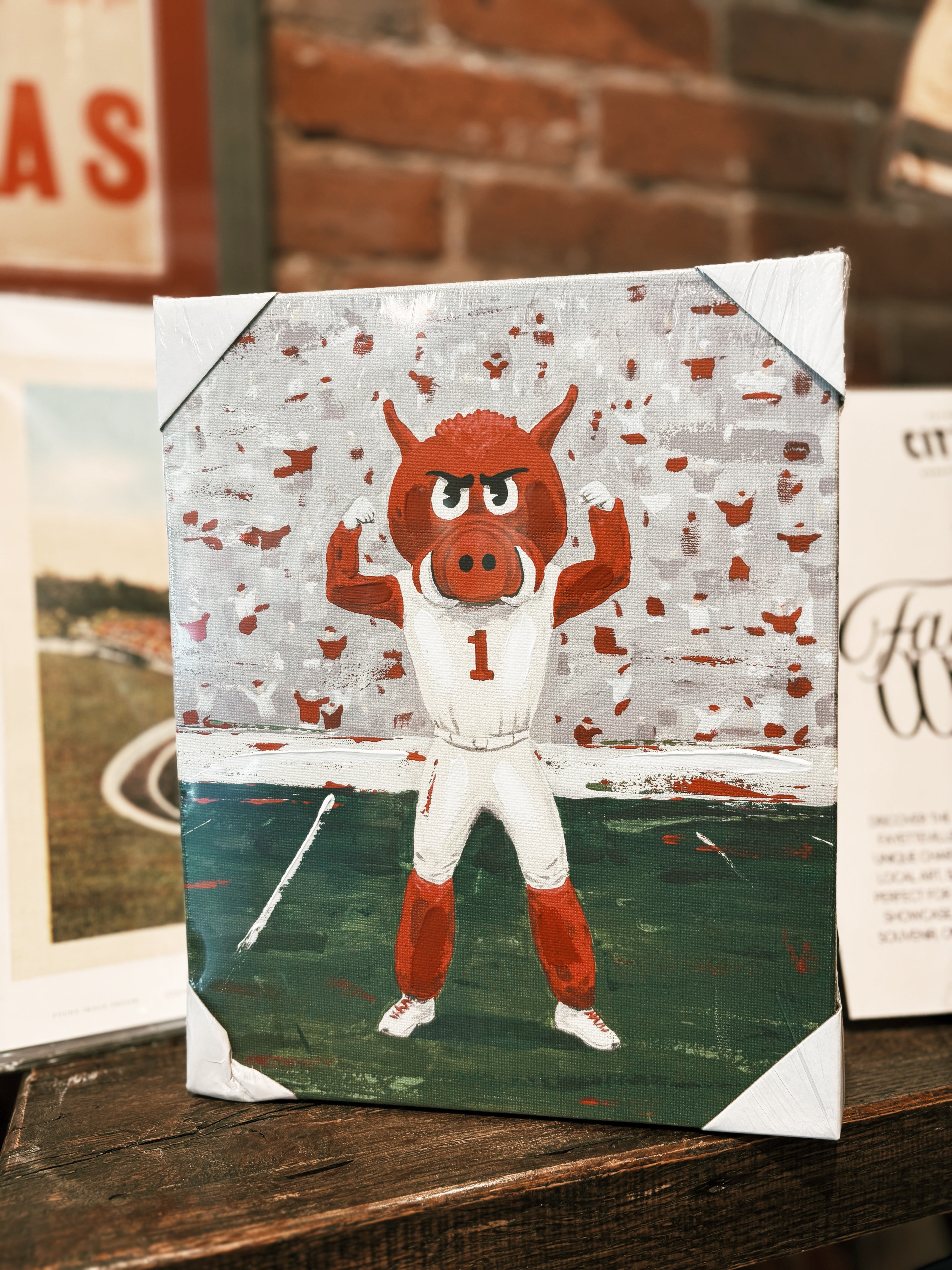Bring your love of the University of Arkansas Razorback to your unique home decor! This Big Red Canvas is perfect for any fan, alumni, or student to display in their space! Whether it is proudly displayed in their home, office, or dorm, this canvas will remind you of Razorback victories and the excitement of gamedays to come! Gift this hand-painted design to a fan you love!