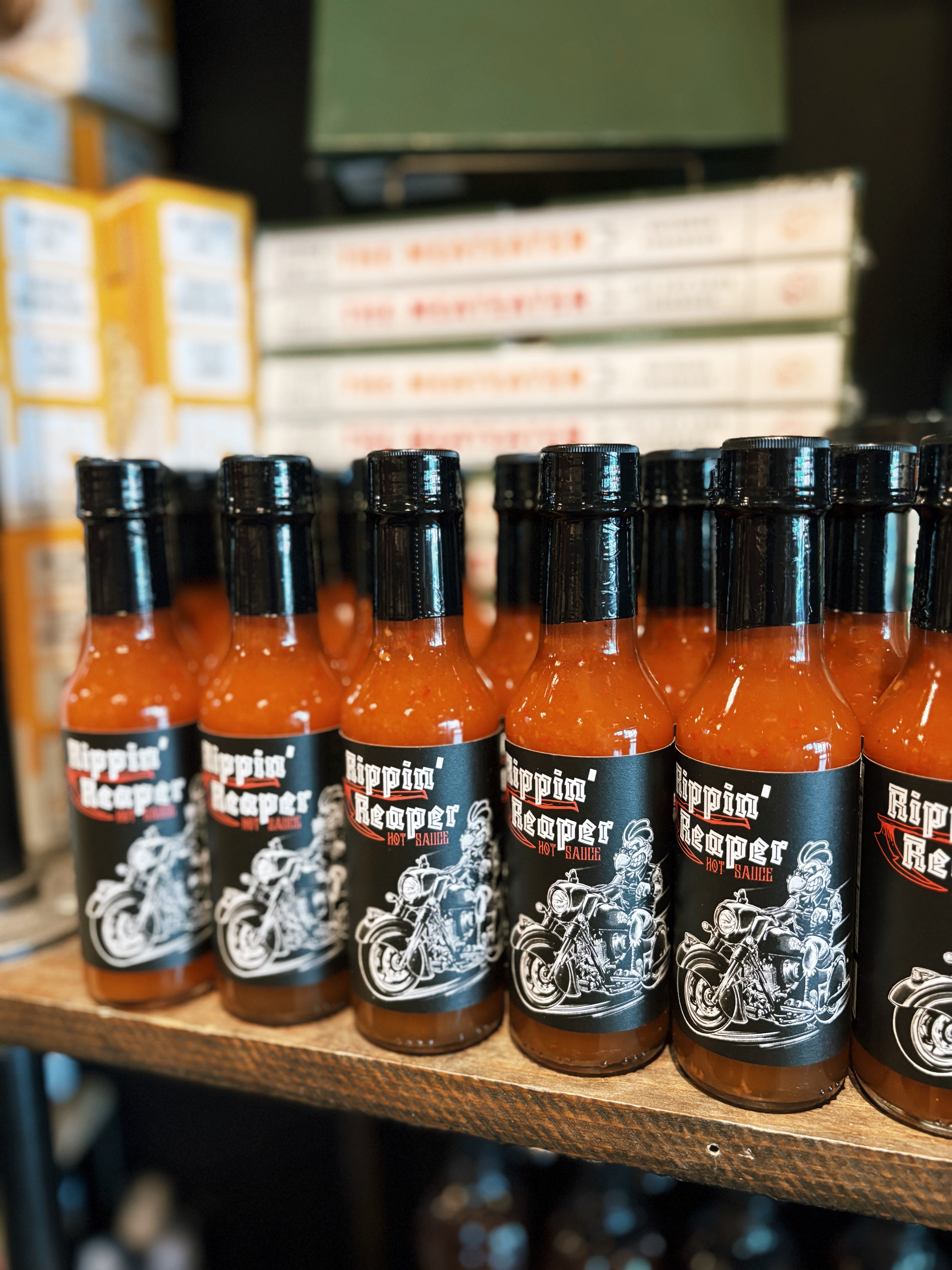 Turn up the heat with Rippin’ Reaper Hot Sauce — a traditional-style hot sauce with a bold, fiery kick. Made with distilled vinegar, onion, garlic, salt, crushed red pepper flakes, ghost pepper powder, and the unmistakable heat of Carolina Reapers, this sauce brings balanced flavor first… then the burn.