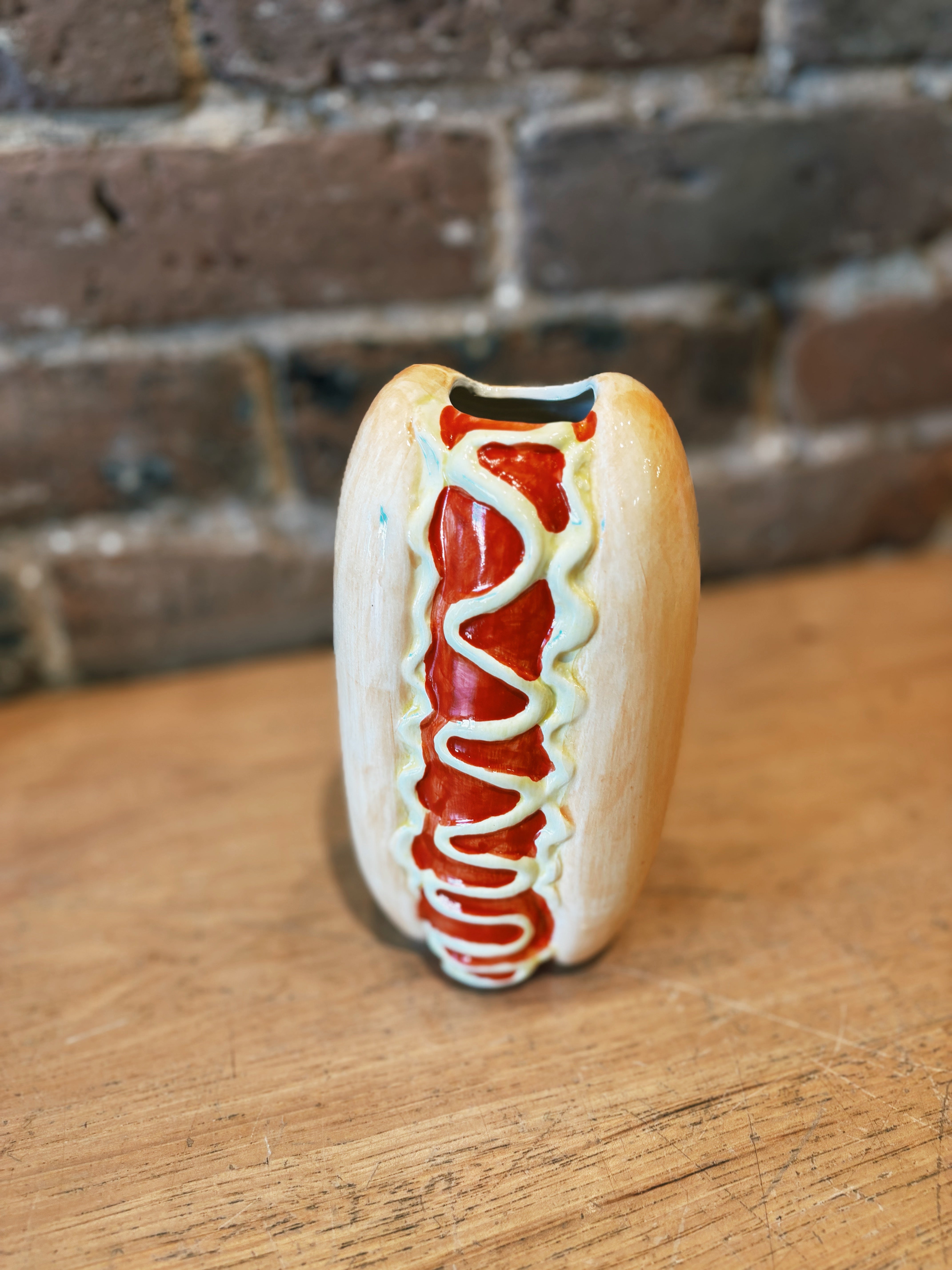 Dinner just became decor. This hotdog vase brings diner-style fun to your shelf with glossy buns, bright toppings, and big personality. Perfect for kitchens, game rooms, or anywhere that needs an extra helping of whimsy.