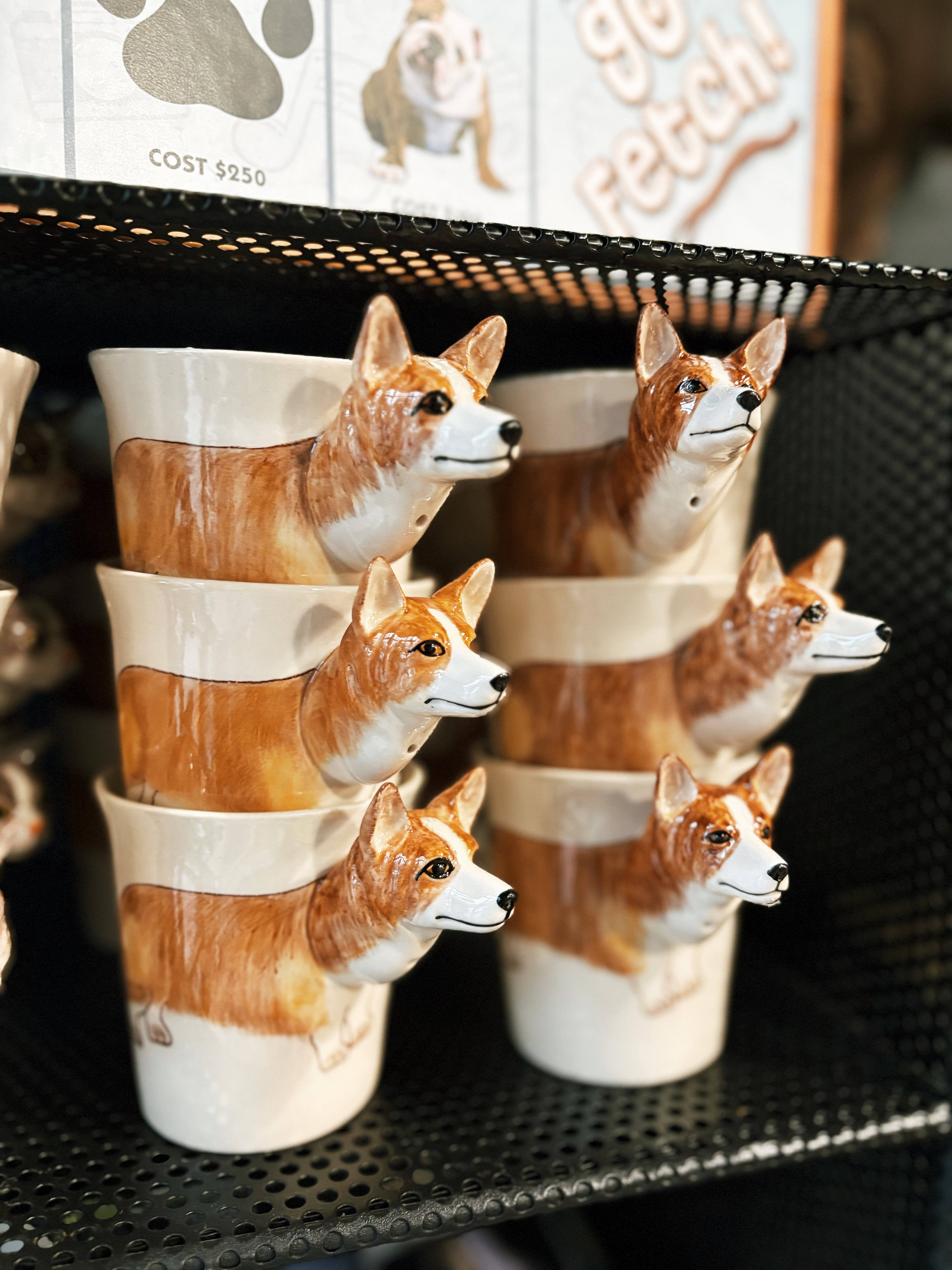 Corgis are very popular pets, especially with the horse crowd. Mug holds about 8oz. Hand painted, microwave and dishwasher safe. Prop 65 compliant. Great for soup as well as coffee and tea and they make good containers for toothbrushes, make up and pens too and don't forget little mini plants such as succulents, all the rage these days.