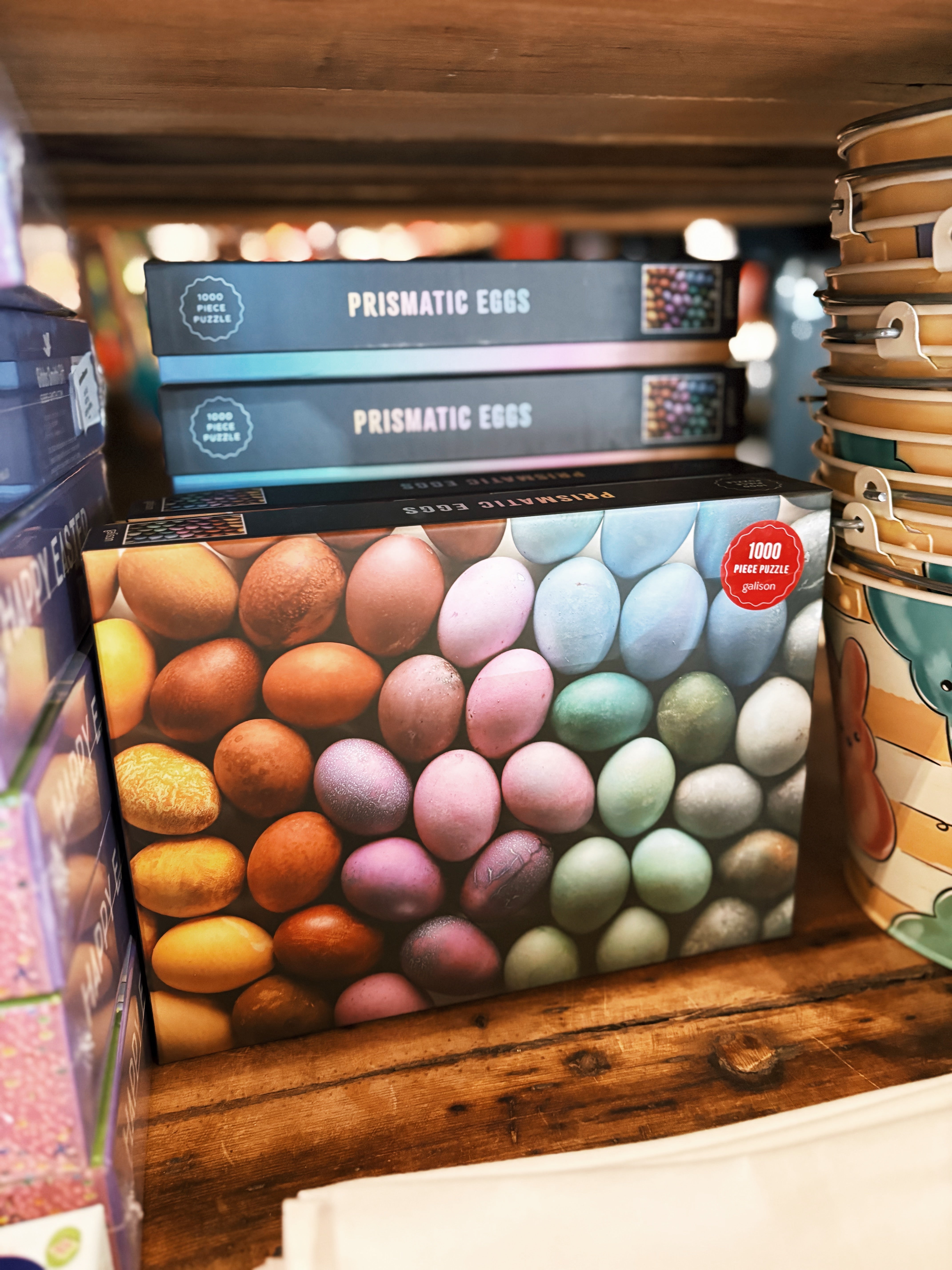 Prismatic Eggs 1000 Piece Puzzle from Galison features eggs arranged by color capturing the spirit of the spring season. Galison puzzles are packaged in matte-finish sturdy boxes, perfect for gifting, reuse, and storage.