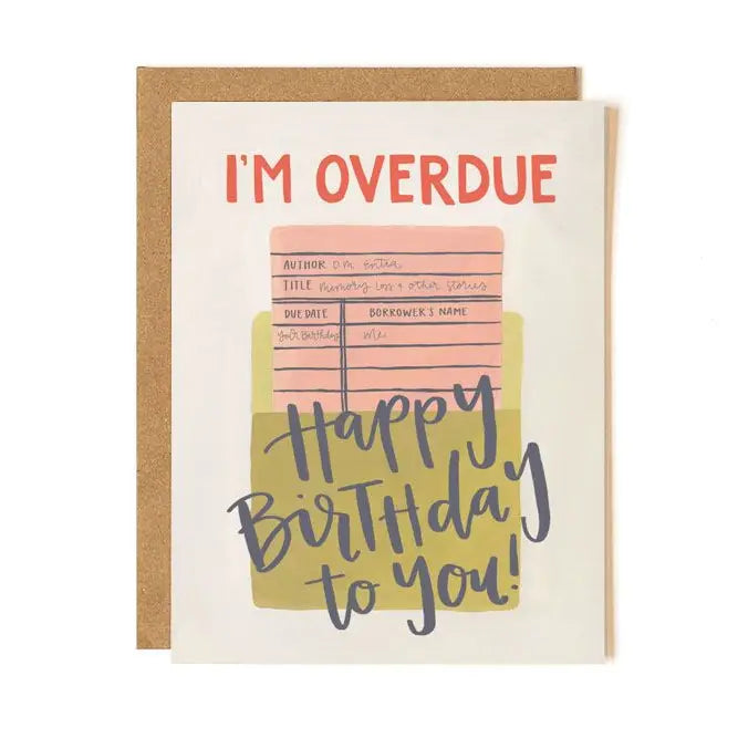 Apologize for the belated but heartfelt birthday wishes with our Overdue Birthday Greeting Card. Perfect for those moments when you want to make up for missing a special day, this card combines humor with sincerity to convey your best wishes in a delightful way. Featuring a design of a overdue library card this card is perfect for sending to friends and family! Format | A2, 4.25 x 5.5" Interior | Blank Envelope | Kraft Product Type | Greeting Card Sentiment | I'm Overdue, Happy Birthday to You!