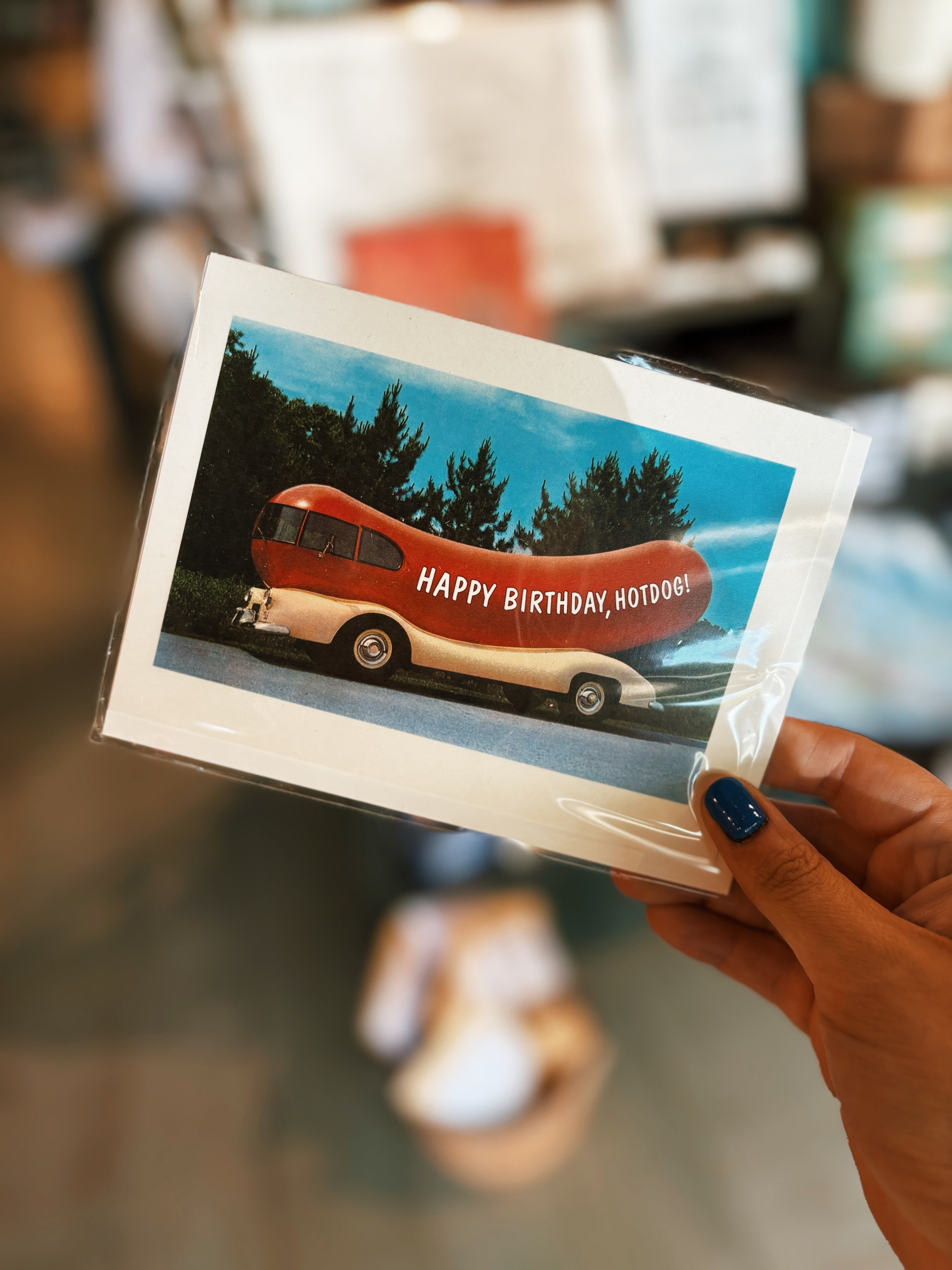 Send big birthday smiles with this retro-cute “Happy Birthday Hotdog” greeting card! Featuring the iconic Wienermobile, it’s the perfect way to ketchup with someone special on their big day. Measures 4.5" x 6.25" and guaranteed to make 'em relish the moment! 🌭🎉