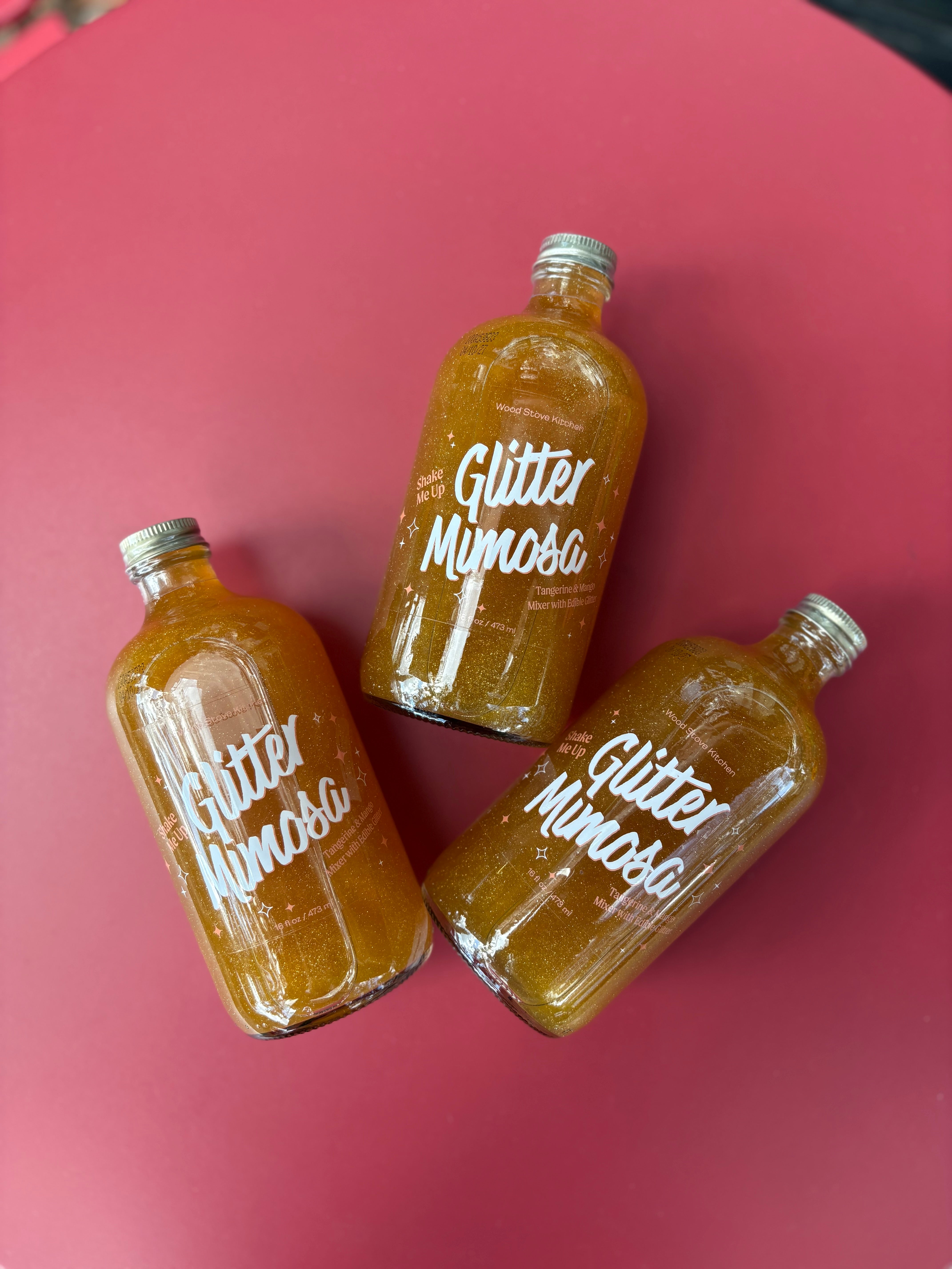 Get your sparkle on with the concentrated, glitter-infused Glitter Mimosa Mixer. It contains tangerine and mango in addition to FDA-approved edible glitter that is made from the mineral mica. There's absolutely zero micro-plastics or anything artificial. Just add 1/2 to 1 ounce of this mixer to a glass of sparkling wine or sparkling juice for a mimosa or "mock-mosa". Or follow our lead and add 1 ounce of this mixer to 1-2 ounces of white rum and a splash of seltzer on top for a fun, tropical cocktail. Each 16 fl oz glass bottle makes 16-32 drinks! Cheers! 🥂
