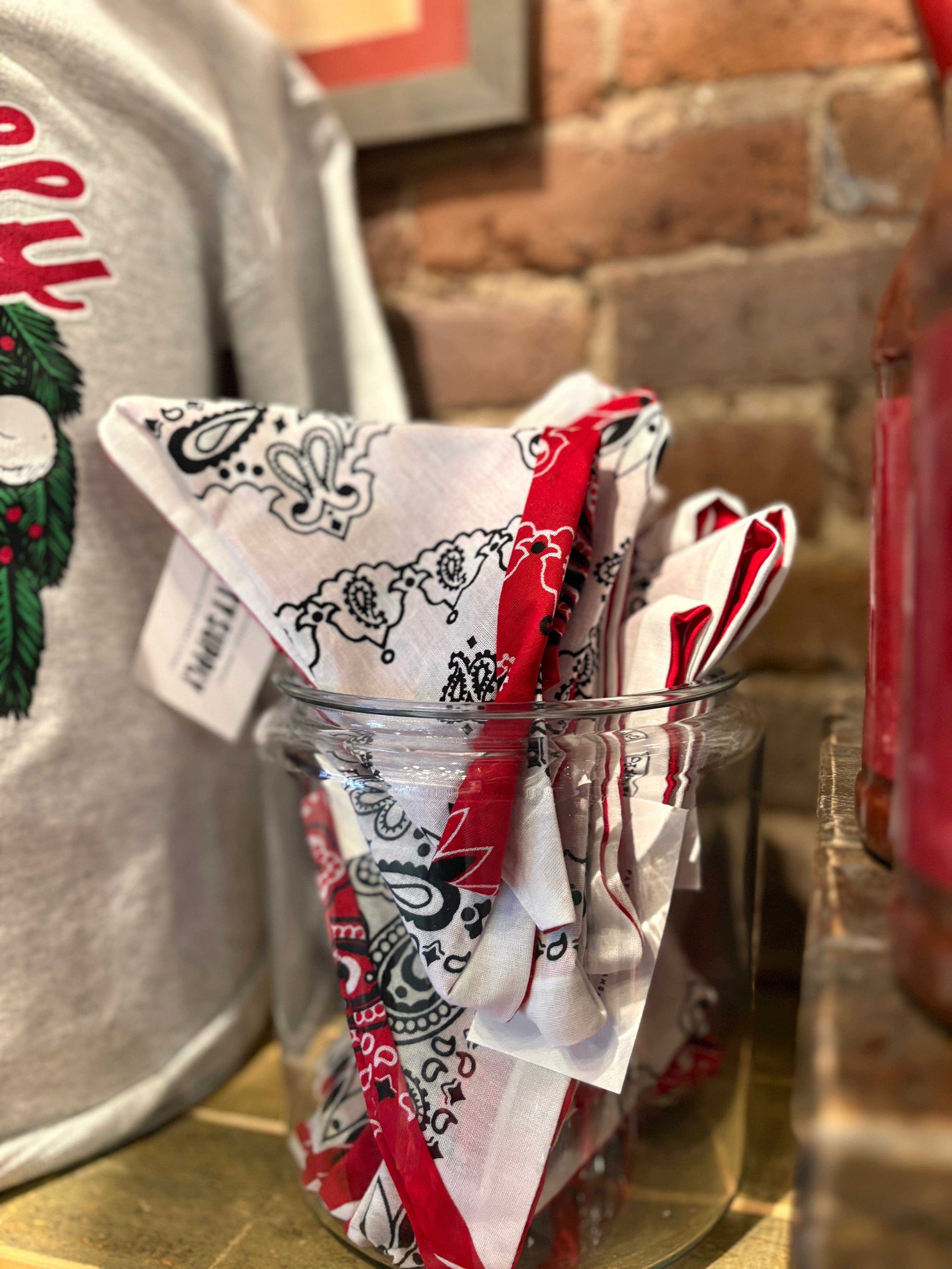 100% Cotton Bandanas, perfect size for a neck scarf, or can be tied onto a purse strap, boot strap, or beltloop. The perfect college gameday or western style accessory! Dimensions: 28" x 13.5"