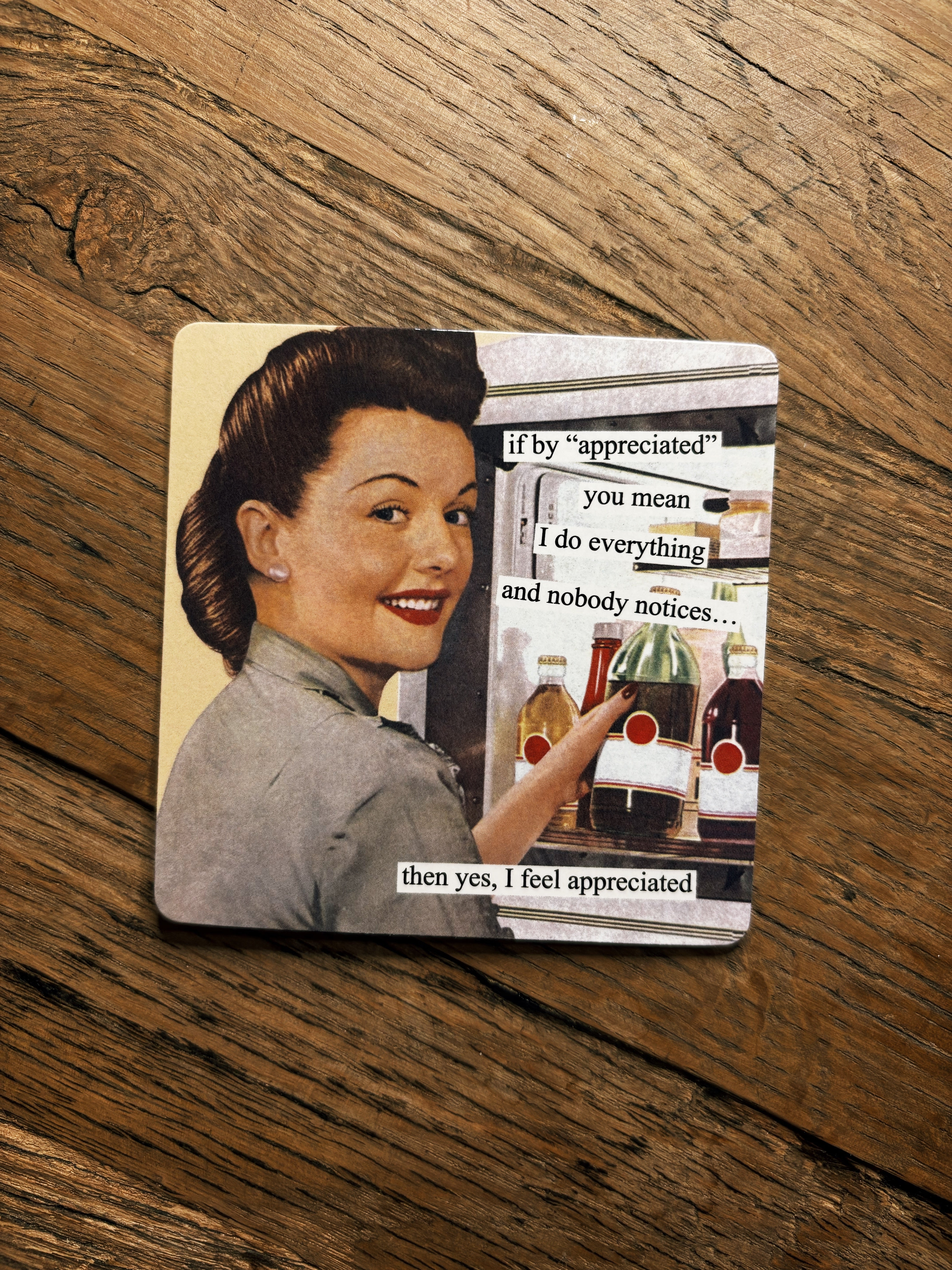 Because feeling *appreciated* is overrated. This 3 3/8" round Anne Taintor magnet brings vintage vibes and just the right amount of sarcasm—perfect for your fridge, file cabinet, or anywhere you need a laugh.