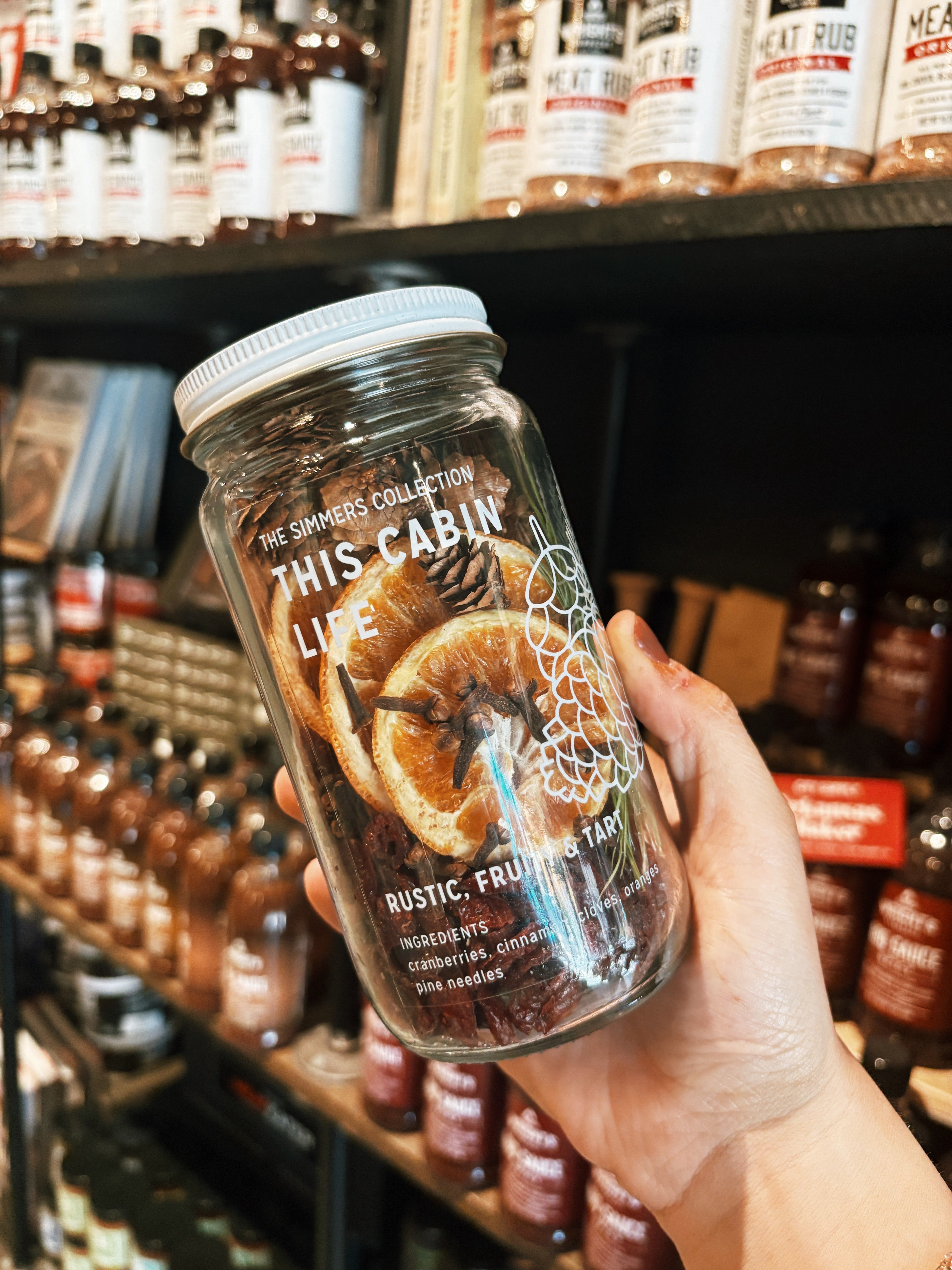 INGREDIENTS: cranberries, cinnamon, cloves, oranges, pine needles, pine cones, bay leaves Our sustainable simmer jars are filled as part of our plastic free, zero waste grocery in Montclair, NJ.