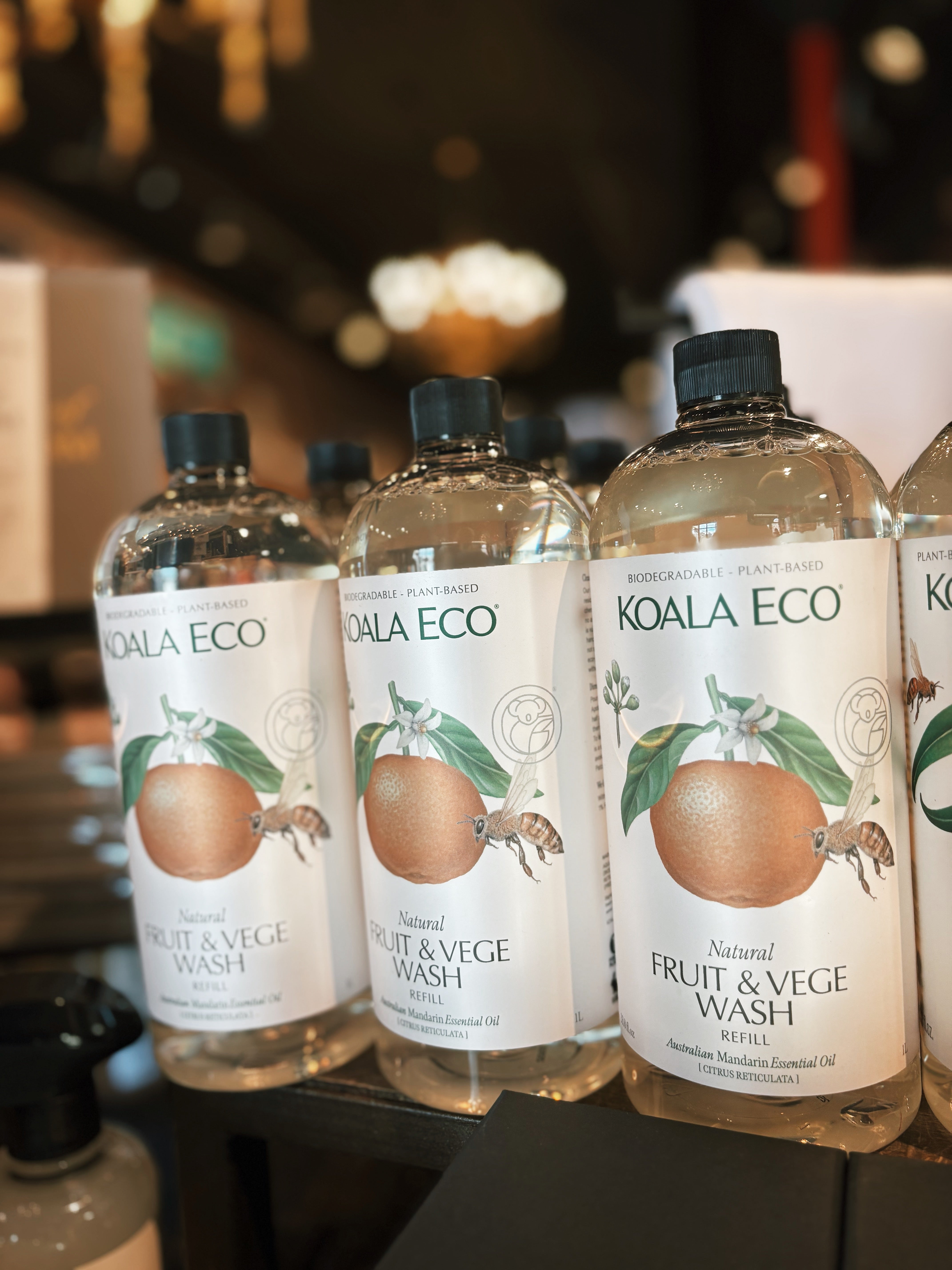 33.8 OZ -No aftertaste -Essential oils -No synthetic fragrance Our Mandarin Fruit & Vegetable Wash removes residual pesticides, oils, waxes and agricultural chemicals from fruit and vegetables, and leaves no aftertaste. Even organically grown produce is vulnerable to the effects of drift spray, human handling, mold spores, and dirt. A simple rinse may not suffice. Koala Eco’s formula cleans produce effectively. Taste the difference when you return your fruit and vegetables to the way nature intended.